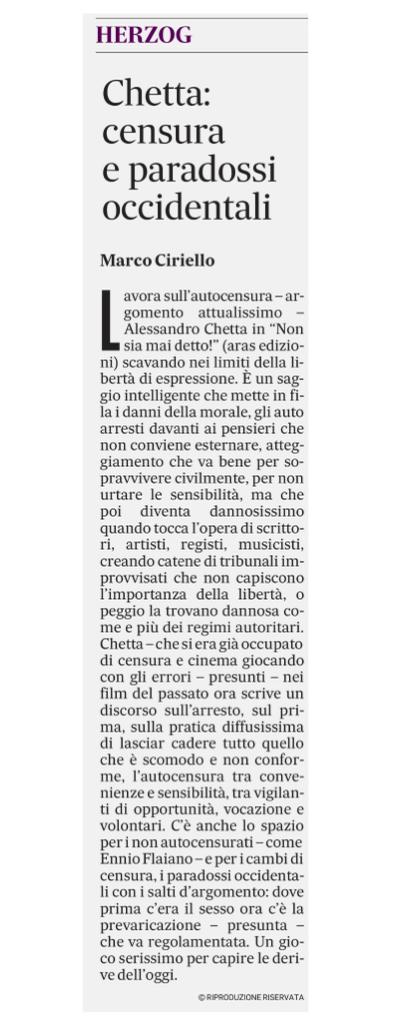 Il Mattino – Napoli, Chetta: censura e paradossi occidentali, di Marco Ciriello, 22 settembre 2022